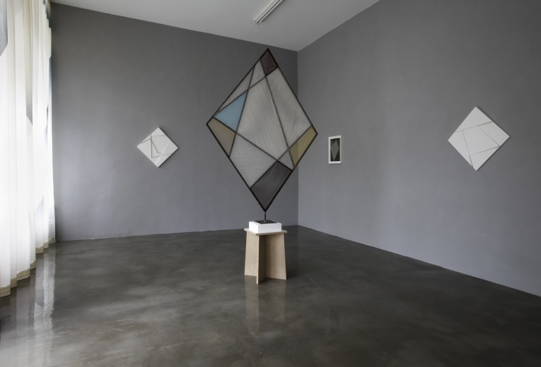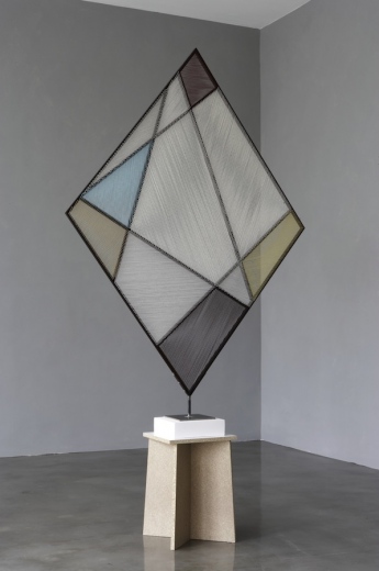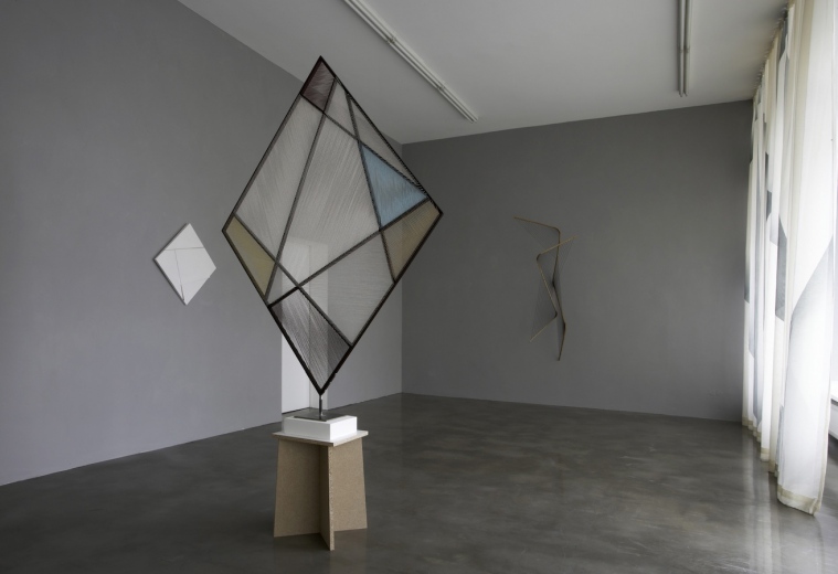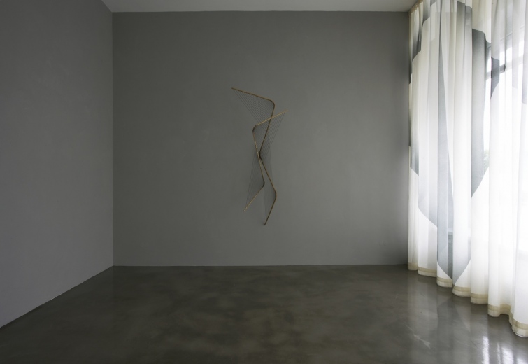 The works move on the boundary between two andthree- dimensional objects, they occupy real space but they alwaysremain to be images. In that sense also the curtain pieces, due to thephysical depth of their pleads, can be conceived as reliefs. The choiceof materials such as wood, wool, plaster, brass and leather or theirapplication refer to the domain of applied arts, alluding to ideas ofentirety since the arts and crafts movement as of the counter cultureof the 1960ies and 70ies. Her formal language reminds of works of theRussian avant-garde, especially supremacist painting, textiles as wellas exhibition design.