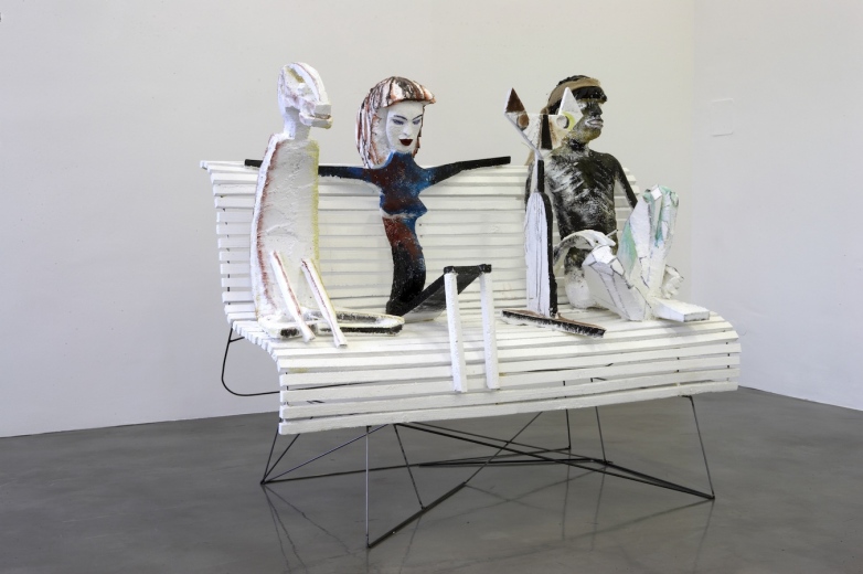 Coated and painted styrofoam, steel