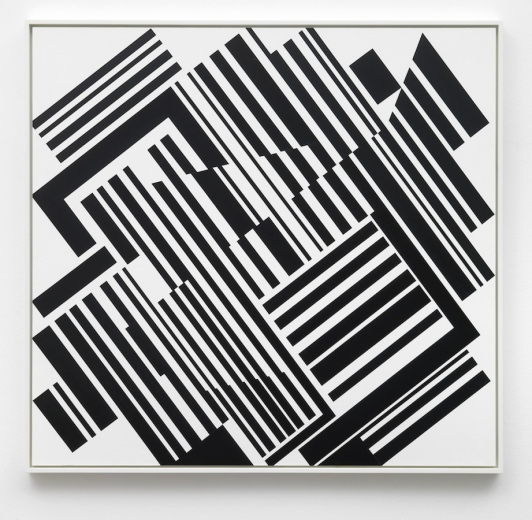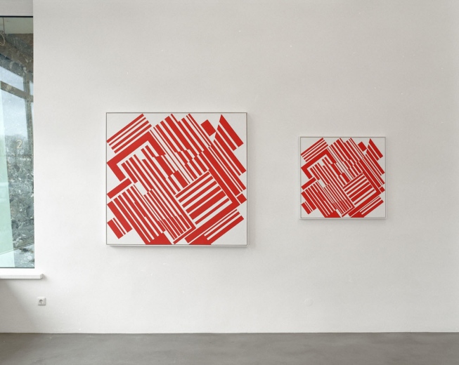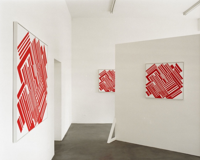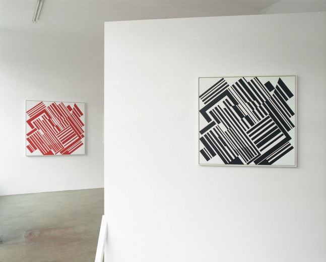 It is here that the work of Markus Ebner, who radically rejects theprevailing dictum to invent something new, ties in. On a conceptualbasis, he poses the question of the possible content of art today,questions the precepts and contents of the Modern and post-Modern and the idle nature of a society that permanently quotes, repeats, and as a result is itself an “appropriator”. Ebner copies the work of his teacher Günther Fruhtrunk, possesses it, and allows it to become his own. A motivation immanent to art is found in Markus Ebner’s method of repetion in significant analogy to Fruhtrunk’s own processes of working, which manifest in numerous variations of one and the same motif over years. Thus, in the Frankfurt exhibition “Career Path of an Astronaut”, Markus Ebner shows the eight pieces from his complex of work “Cloister Garden”, as well as the black and white variation Jardin de Monastère.