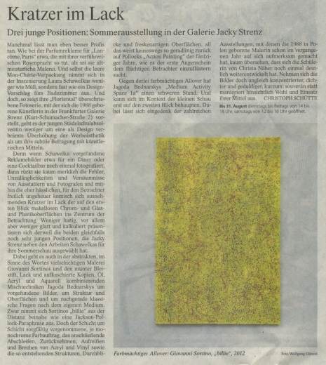 Wie übereinander liegende Glasplatten bestehen Giovanni Sortinos Gemälde aus einzelnen Schichten, die nur Teile der tiefer liegenden erkennen lassen. Die Betrachtung der Palimpseste sensibilisiert unwillkürlich die Wahrnehmung, denn das Erfassen tieferer Ebenen erfordert die Lenkung des Blicks durch die im Vordergrund agierende Zeichnung hindurch in schleierhaft sich verdichtende und wieder lösende Zonen.