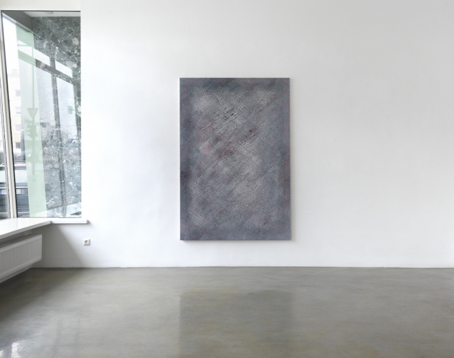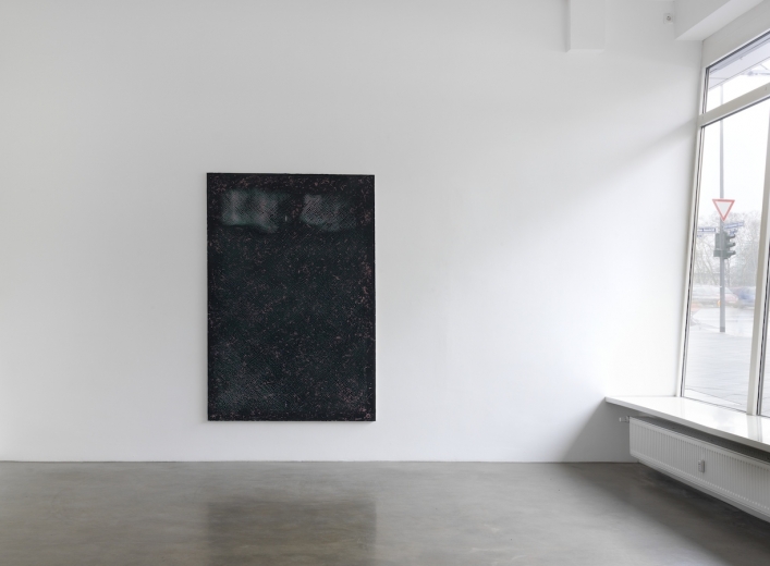 Whether you hallucinate flying sparks over a labyrinth, or fireflies under grid investigation – Giovanni Sortino’s many-facetted paintings could provoke unfettered lyricism. But tracking down remnants of what is already known is not the issue. Instead of sifting through new textures in search of old and hence recognisable shapes, why not enjoy what defies easy recognition? Seen from a distance, overlaying structures free from any organizing hierarchy seem to potentially continue left, right and centre, which makes them match the main principle of all over-painting. Upon closer inspection areas start to emerge from the seemingly even canvases, before fairly distinctive gestalts become apparent – almost. Within the sometimes liquid, sometimes gaseous environment diagonal and horizontal fields solidify into clusters standing out, only to vanish under the inquisitive gaze as slowly as they evolved – if not necessarily without a trace.