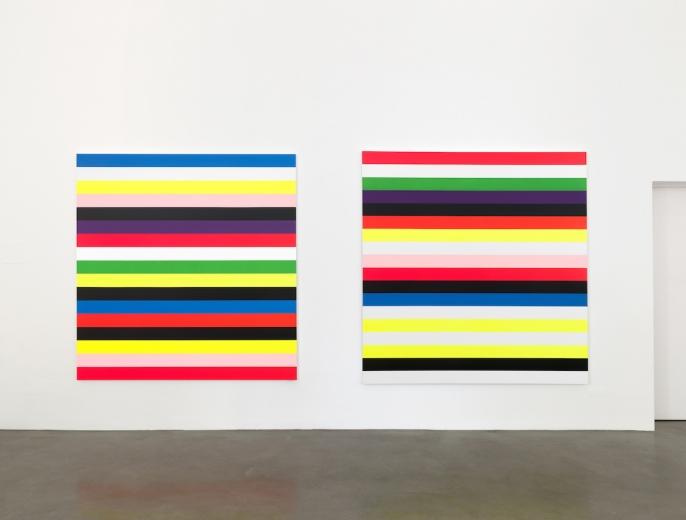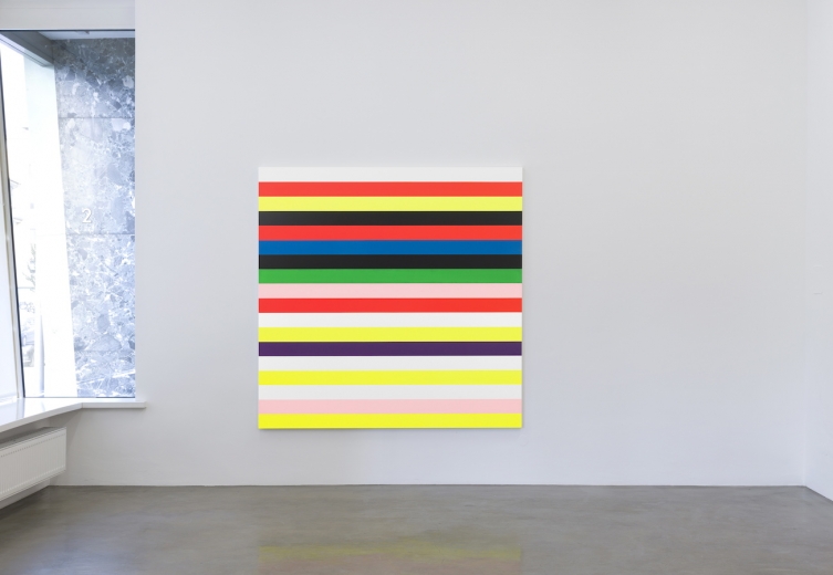 Despite the vehemence of these strips pushed to ultimate luminosity their consonance remains just that: a calm vibration instead of a jarring crescendo, and as a consequence the pictorial realization of the concept that there is strength within calmness – or within Herzogspitalstrasse, in case somebody should bother to seize on ideas of past decades instead of inventing additional wheels.