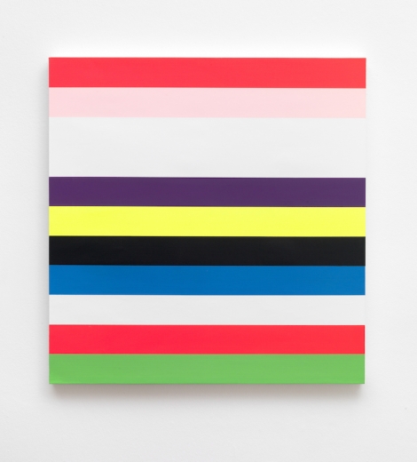 Ähnliches gilt auch für die Form, deren Subjektivität die waagerechten und somit neutralen Streifen zu vollem Bewusstsein bringen. Die Überschaubarkeit der gleichmäßig übereinander gelagerten Zonen birgt weder Geheimnis noch Überraschung und macht daher ihre Verzerrung durch auch nur geringfügige Positionsänderungen der Betrachtenden umso augenfälliger.
